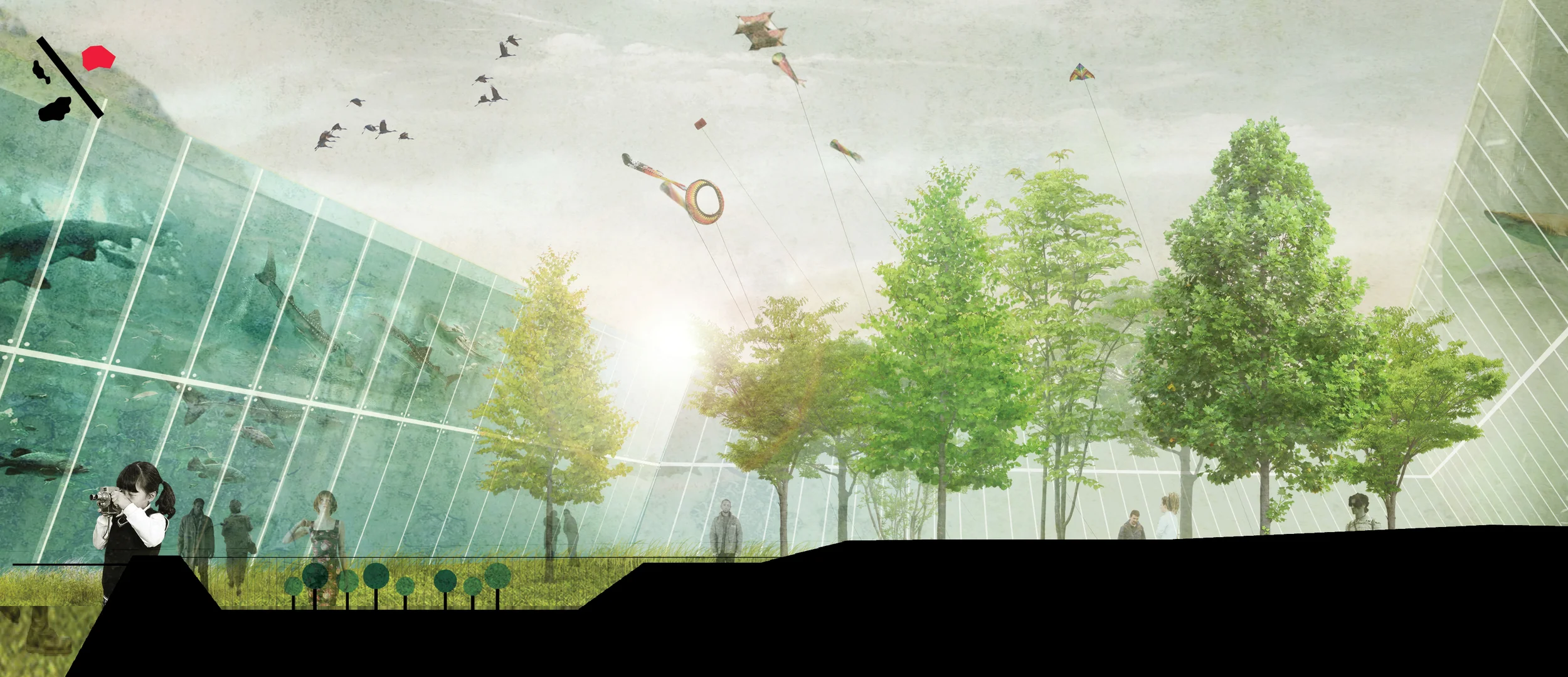 Landmarking proposes four unique experiences along the seawall to provide something for everyone: an ecological park, an underwater arboretum, an office building, and a beach. The four programs are strategically located at the intersections where four future neighborhoods meet the ocean, thereby marking the different zones along the seawall. Each experience is identified as unique but can only be called unique in its association with the seawall. Conversely, the seawall is already identified as a landmark but can only perform as a landmark when Landmarking provides various ways to embrace the monumentality of the super-structure. Landmarking is a simple urban move that aims to maximize the potentials of the already-built seawall through a series of choreographed, yet minimal, urban interventions.