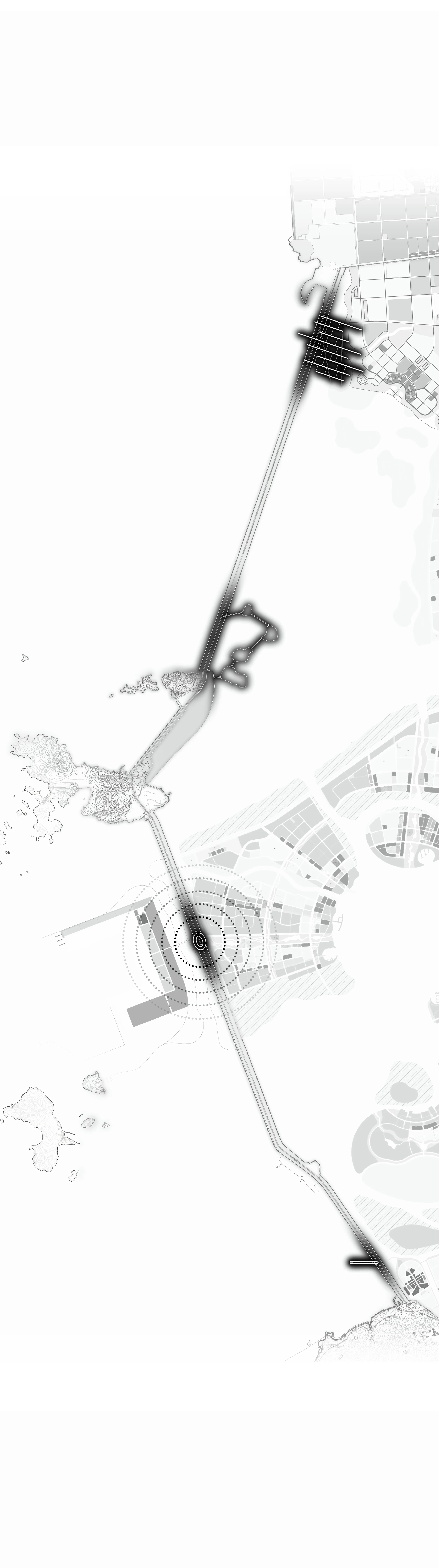 Located at the intersection of Science Zone and Ecology Zone, Ecological Grid is a hybrid of an environment research laboratory and an ecological park. A grid of pathways lightly touch the ground minimizing impact on the landscape while allowing the public to experience the beautiful scenery of reed field and marshland. The floating structure also acts as a pedestrian connection between the new city, BSBD National Park, Shinsi Island, and Yami Island.